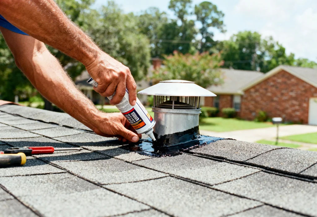 Many leaks come from worn pipe boots, damaged shingles, failed flashing, and clogged valleys. Storm debris can also damage the roof surface and expose underlayment. Over time, Louisiana heat can accelerate cracking and seal failure around roof penetrations.